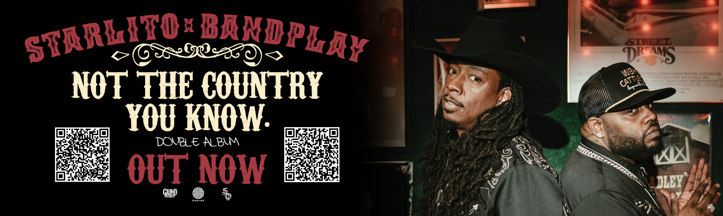I come ALIVE with music branding! My client Starlito requested my services for his Double Album “Not The Country You Know” a little over a month before its release. I immediately started with the title design for the album inspired by Johnny Cash, Jack Daniels and Western vibes. Although this is a rap album, I wanted to capture the energy of country music.